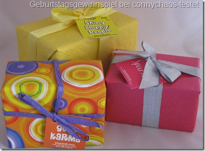Es gibt gleich drei Preise zu gewinnen. Allesamt Geschenkpakete von Lush. Und wenn mehr als 50 Leser mitmachen, gibt es sogar noch einen Überraschungsgewinn. Da möchte ich natürlich mein Glück versuchen.